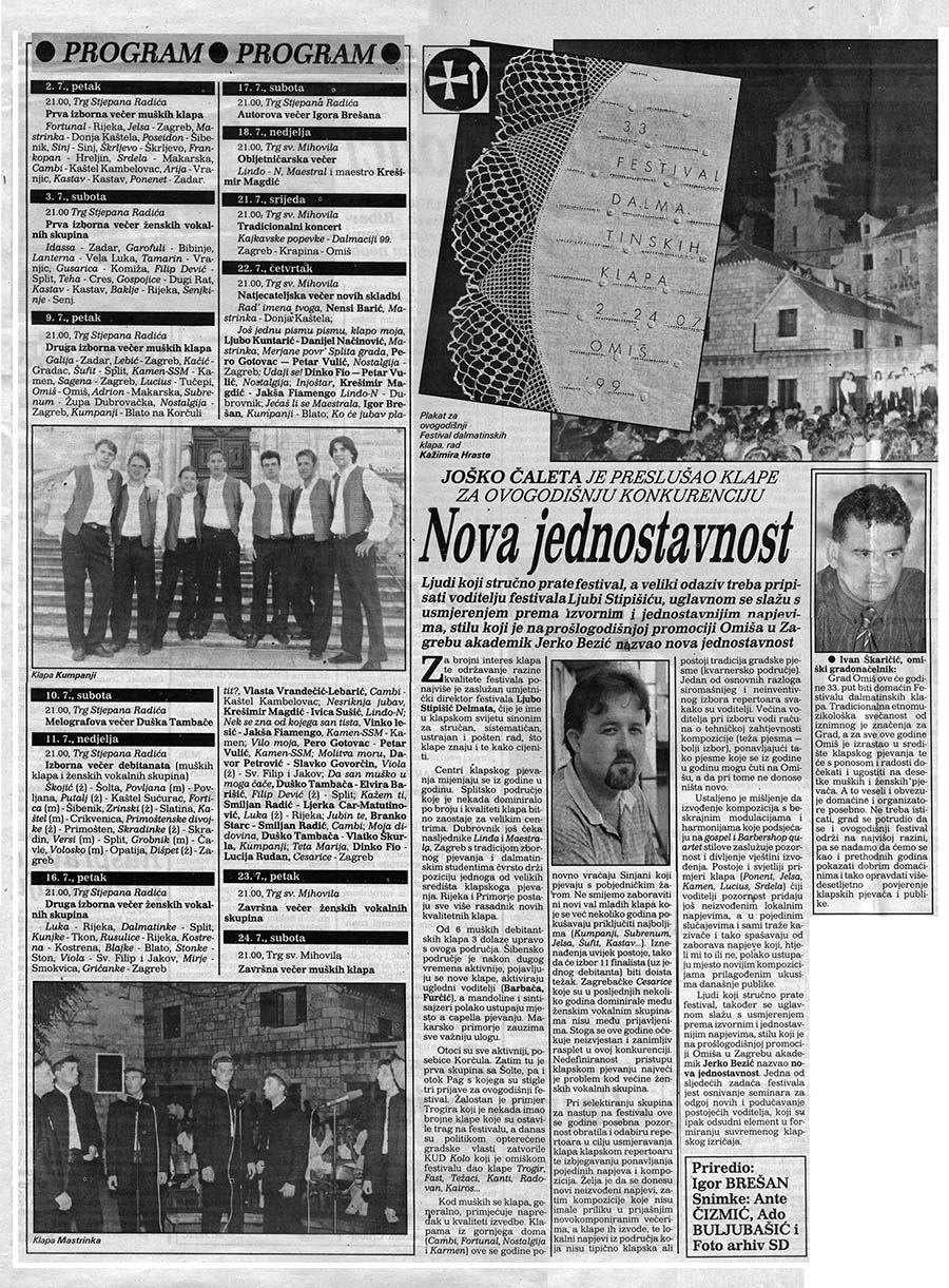 O DOGAĐANJIMA NA 33. FESTIVALU DNEVNIK "SLOBODNA DALMACIJA" PIŠE