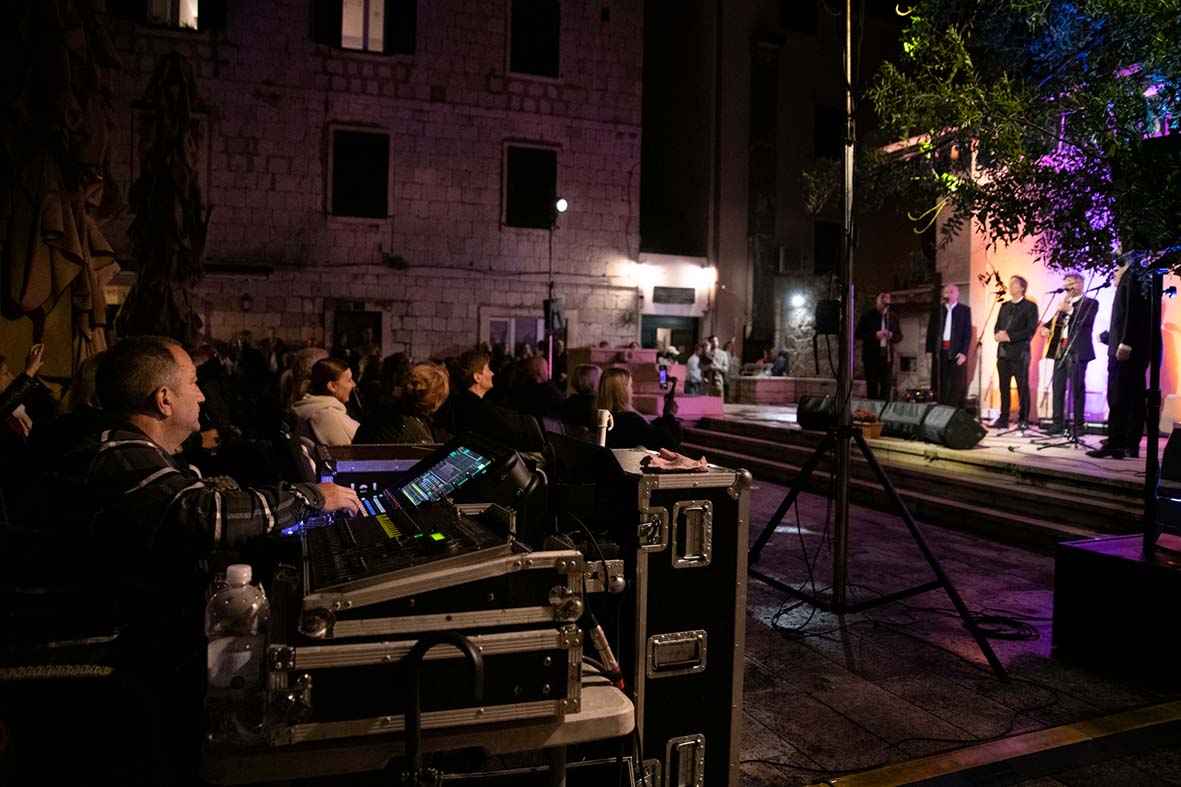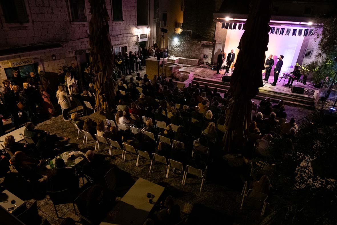 Legendarni omiški trg koji je među stanovnicima grada na ušću Cetine poznat kao onaj ispod žižule, sinoć je bio premalen za sve ljubitelje istinske dalmatinske pjesme koji su došli poslušati klapu Cambi. Riječ je o daru Festivala dalmatinskih klapa Omiš svome Gradu za blagdan.