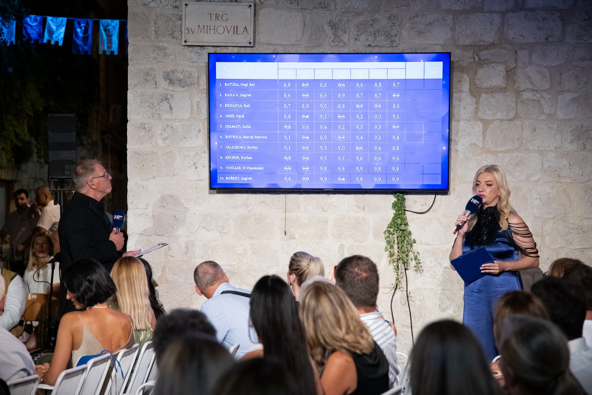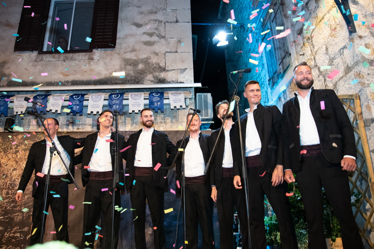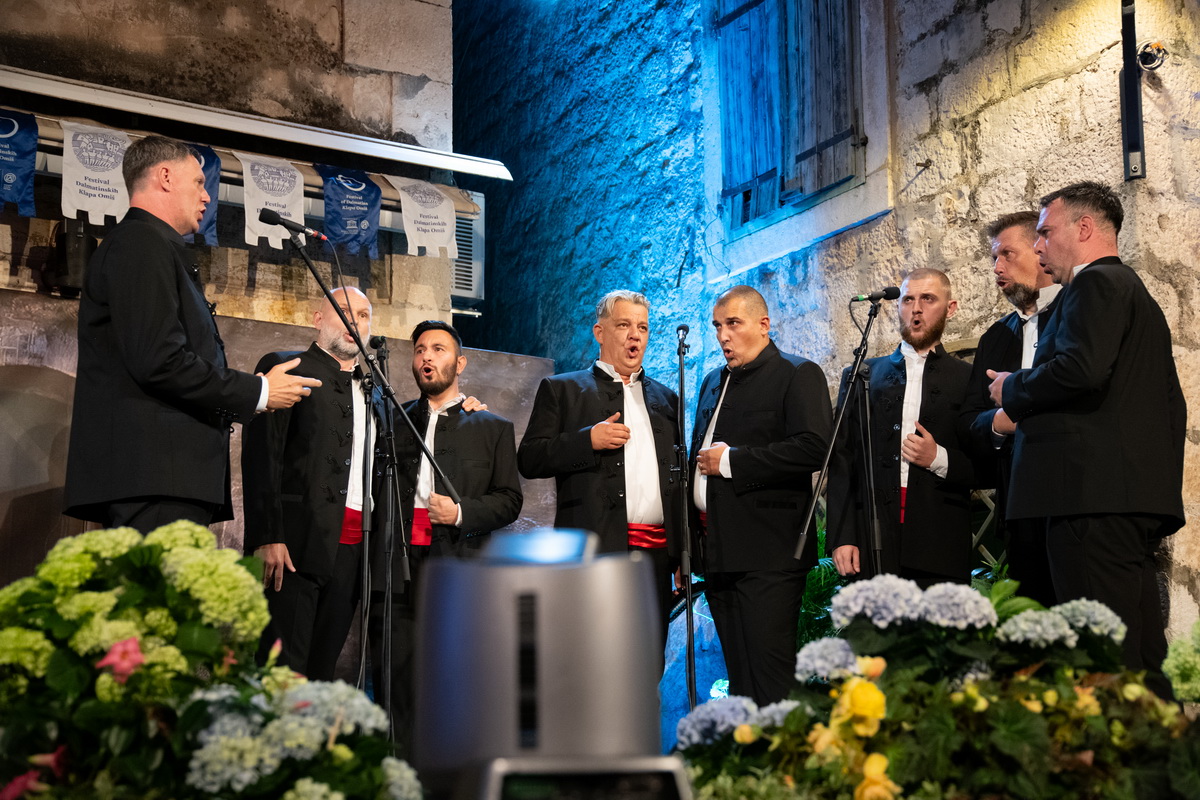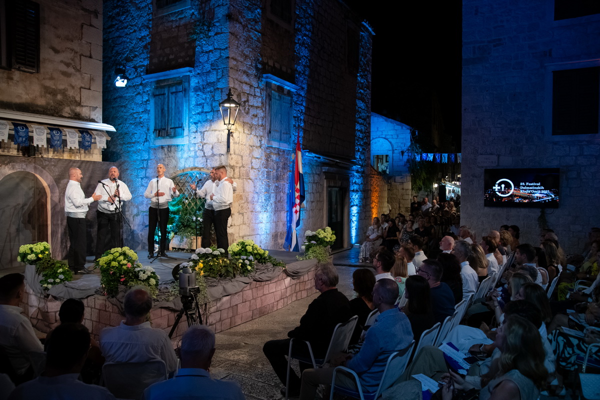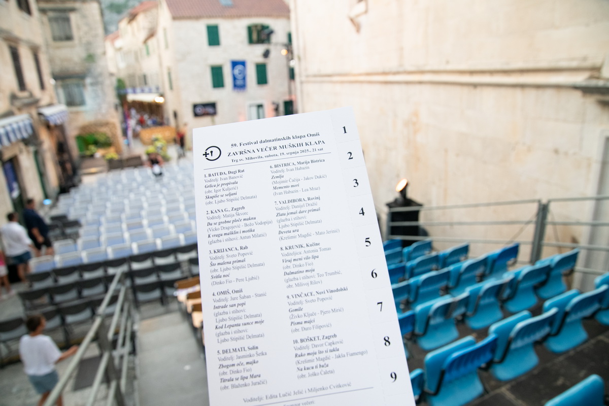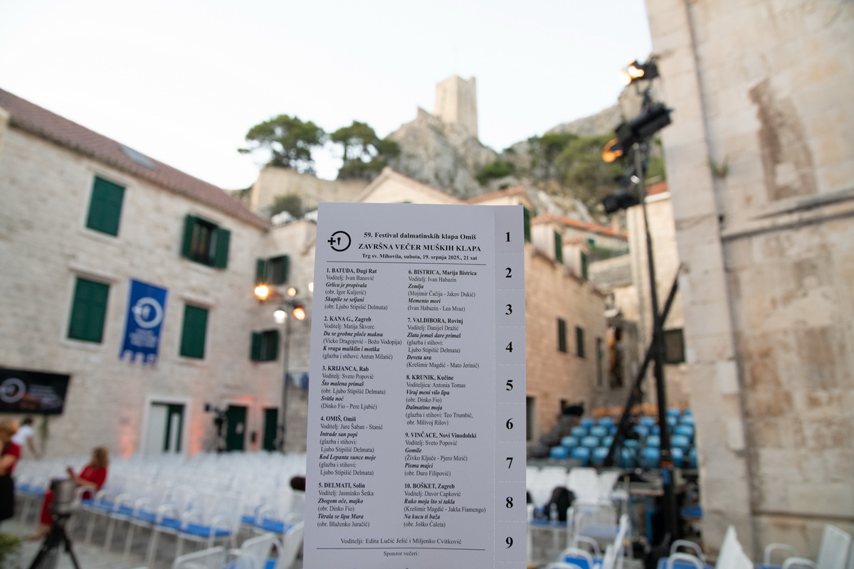 Na Završnoj večeri muških klapa 59. Festivala dalmatinskih klapa Omiš 2025. nastupile su redoslijedom klape Batuda-Dugi Rat, Kana G.-Zagreb, Krijanca-Rab, Omiš-Omiš, Delmati-Solin, Bistrica-Marija Bistrica, Valdibora-Rovinj, Krunik-Kučine, Vinčace-Novi Vinodolski i Bošket-Zagreb.
