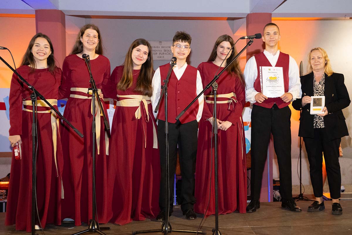 Na četvrtoj Večeri dječjih klapa 59. Festivala dalmatinskih klapa Omiš 2025. klapa osvaja prvo mjesto - Zlatni omiški grdelin u kategoriji B (učenici srednjih škola).