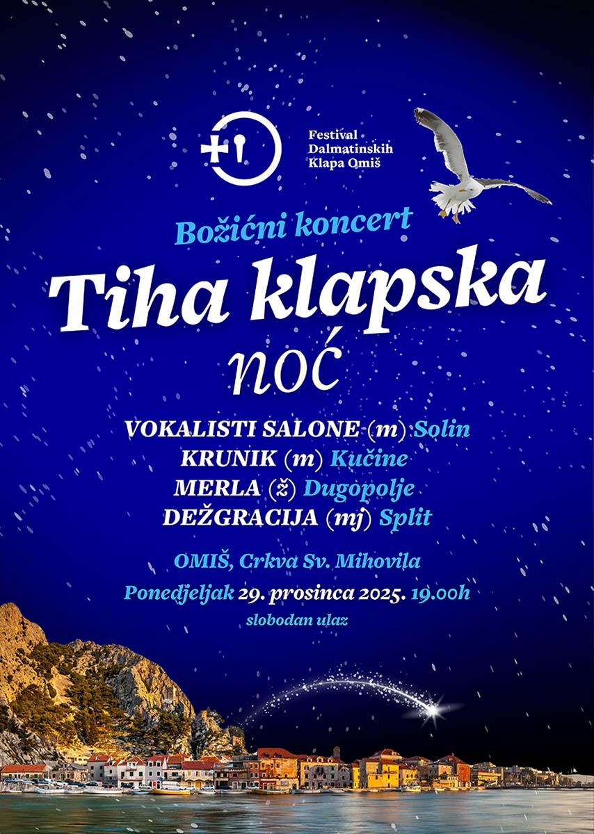 I ovih blagdana Festival dalmatinskih klapa Omiš, tradicionalno za sve ljubitelje klapske pjesme, organizira blagdanske koncerte pod nazivom “Tiha klapska noć“.